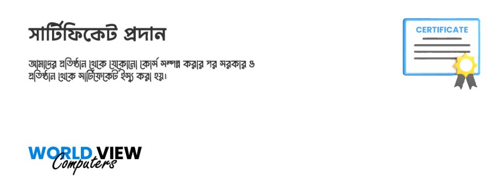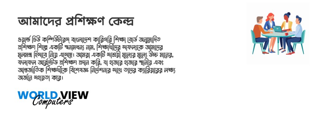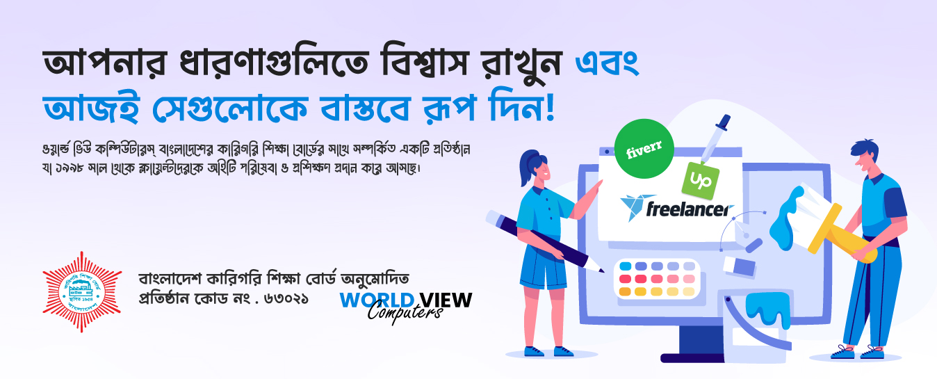 জাতীয় দক্ষতামান বেসিক সার্টিফিকেট কোর্স জানুয়ারি - জুন ২০২৫ সেশনের ফলাফল প্রকাশিত হয়েছে । ওয়ার্ল্ড ভিউ কম্পিউটার্স এ কম্পিউটার অফিস এ্যাপ্লিকেশন, বেসিক গ্রাফিক্স ডিজাইন এন্ড মাল্টিমিডিয়া এবং প্রফেশনাল গ্রাফিক্স ডিজইন উইথ ফ্রিল্যান্সিং কোর্সে ভর্তি চলছে।